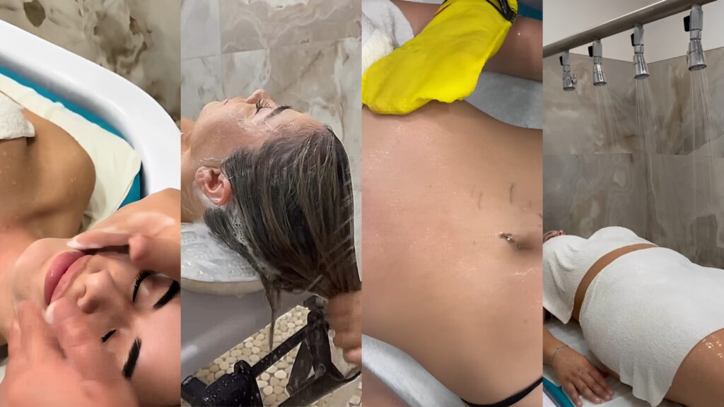 They also offer a private full body massage, which begins with a full body wash, followed by facial cleansing, a hydrating face mask, and a hair wash. This rejuvenating process lasts approximately 75 minutes.