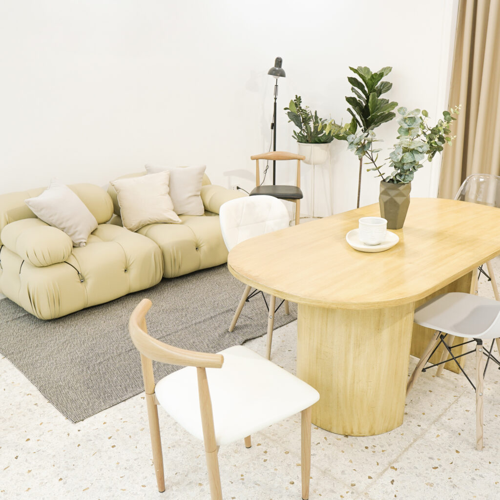 Inspired by the minimalist fusion of Japanese and Scandinavian design known as ‘Japandi,’ B&B Studios’ kitchen and dining area boast an all-white aesthetic complemented by light-colored wood accents. Enhanced by overhead panel lights, the space ensures optimal lighting for any shoot. Its versatile interior is suitable for a range of food content, including commercial shoots, vlogs, or professional marketing materials.